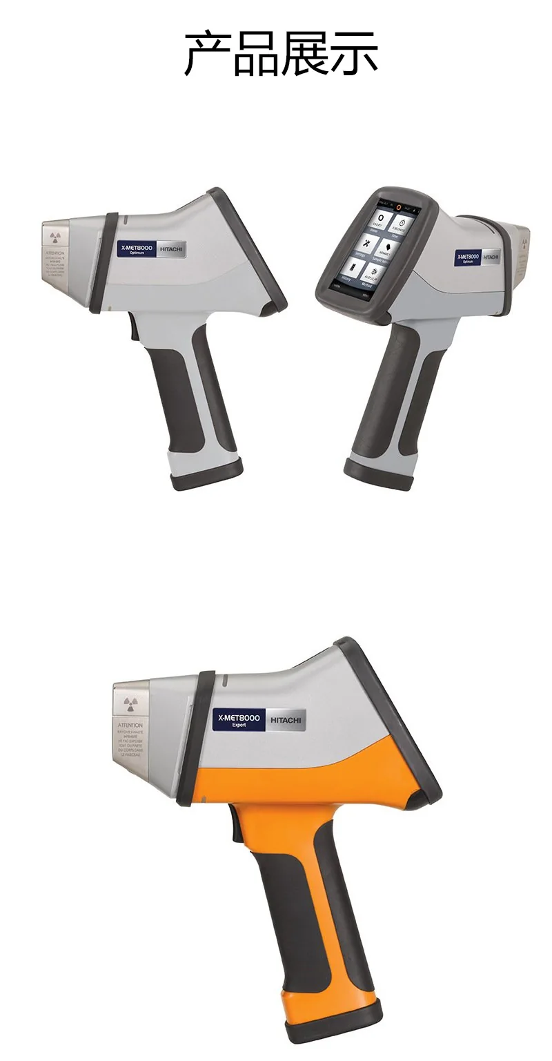 日立手持式X光荧光分析仪,(HHXRF)的X-MET8000系列提供进行快速的合金等级鉴定,及多种材料(各类金属合金、固体和粉末金属、聚合物、木材、溶液、土壤、矿石、矿物等)的准确化学元素分析所需的性能。日立X-MET8000系列手持光谱仪方便、耐用且使用简单,可为用户提供可靠的分析结果。